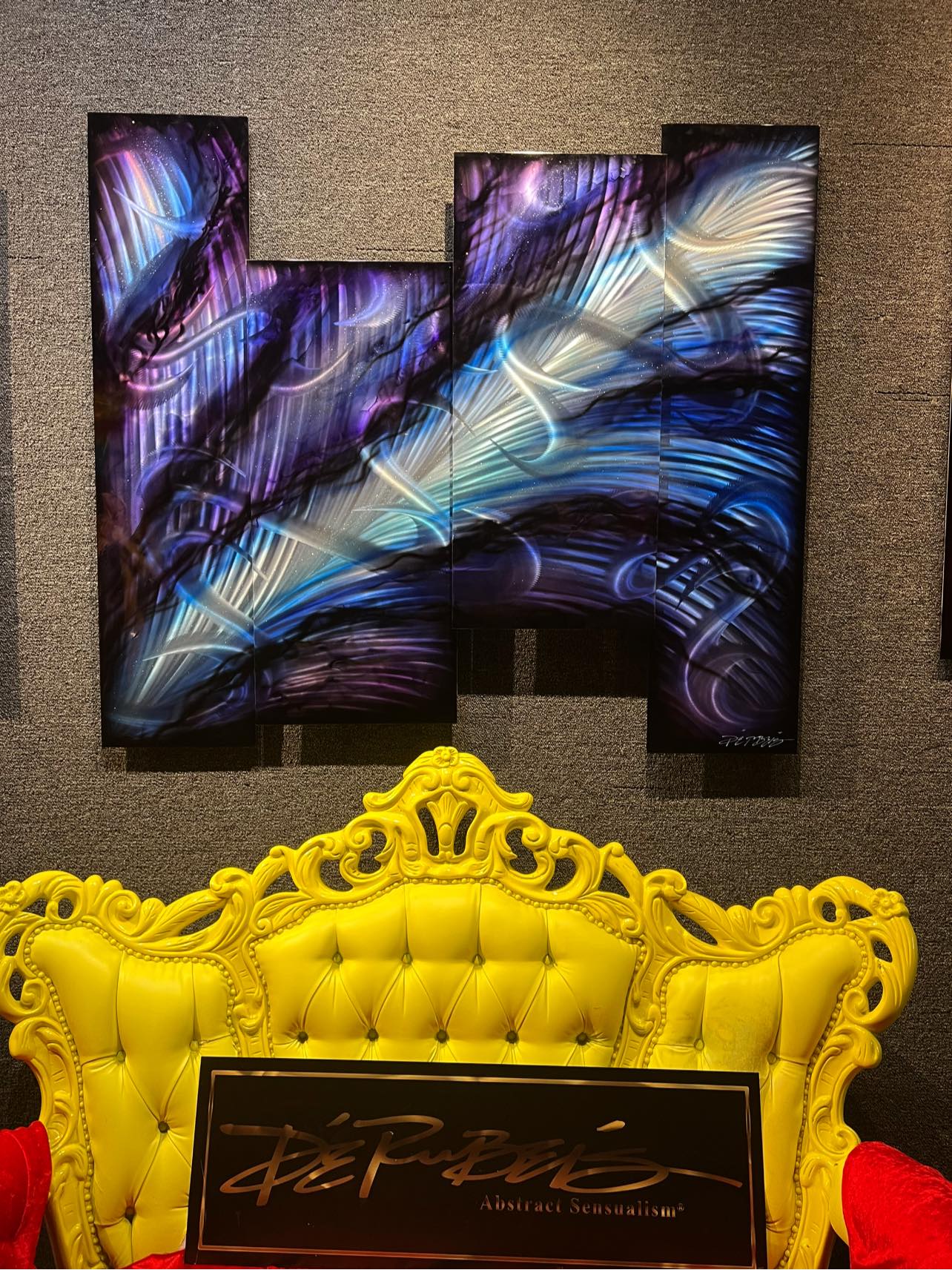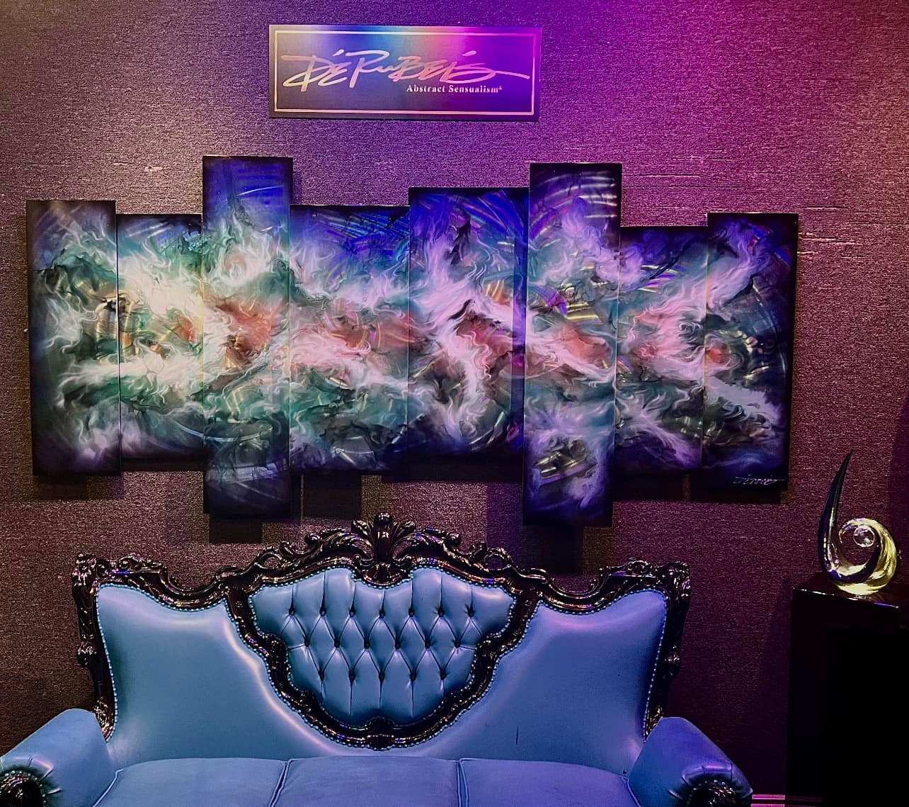 Jedes Werk ist ein einzigartiges Original, da DeRubeis Strukturen und Lichtwellen verwendet, um schwerelose, durchsichtige Formen zu schaffen. Farben fließen nahtlos von einem Farbton zum nächsten, während die Transparenz seiner Farbschichten die Illusion einer unglaublichen Tiefe erzeugt.