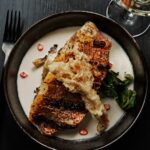 En Kindler, nuestro equipo prioriza la calidad y la sostenibilidad en cada ingrediente que servimos. Nuestros mariscos son de captura silvestre y provienen exclusivamente de proveedores locales, lo que garantiza su frescura y apoya a nuestra comunidad. La carne que se ofrece en el menú de Kindler se cría de forma ética, con un enfoque en prácticas de pastoreo en libertad y alimentación con pasto. De la costa a la tierra, nos comprometemos a servir comida deliciosa y de origen responsable.