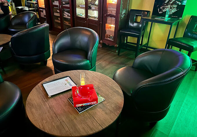 Venez nous voir, nous sommes ouverts tard. C'est là que les amateurs de cigares, de pipes, de tabac à pipe, de bière et de vin peuvent boire et socialiser avec d'autres personnes qui apprécient une excellente conversation et une excellente sélection.