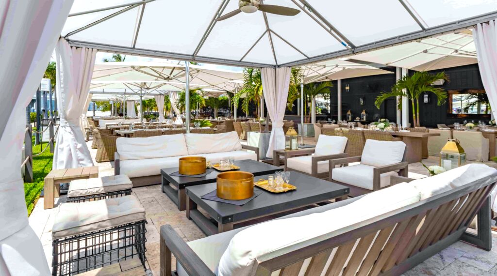 The Deck at Island Gardens היא המסעדה המעודנת ביותר של מיאמי במרינת יאכטות על קו המים, הסביבה המושלמת לאורחים ליין, לסעוד ולרקוד בחוץ. האורחים מוזמנים להגיע ביבשה או בים, ויכולים לשבת בנוחות ליד שולחנות אוכל בגודל מלא או טרקליני ביתן על קו המים. אנו מציעים נופים ציוריים מדהימים של מרכז מיאמי ומפרץ ביסקיין, אחד מנופי השקיעה הבולטים ביותר שיש למיאמי להציע.