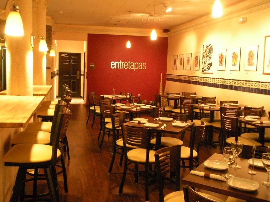 Entretapas è specializzato in autentiche tapas spagnole. Scegliamo ingredienti di prima qualità per creare piatti eccezionali che puoi condividere e gustare con la famiglia e gli amici. La nostra atmosfera accogliente e raffinata e gli occasionali spettacoli di flamenco ti accoglieranno a braccia aperte. Qui puoi ordinare la tua paella nel modo che preferisci: gamberetti, cozze, calamari, pollo - lo chiami tu! La passione che abbiamo per la cucina saporita non finisce mai.