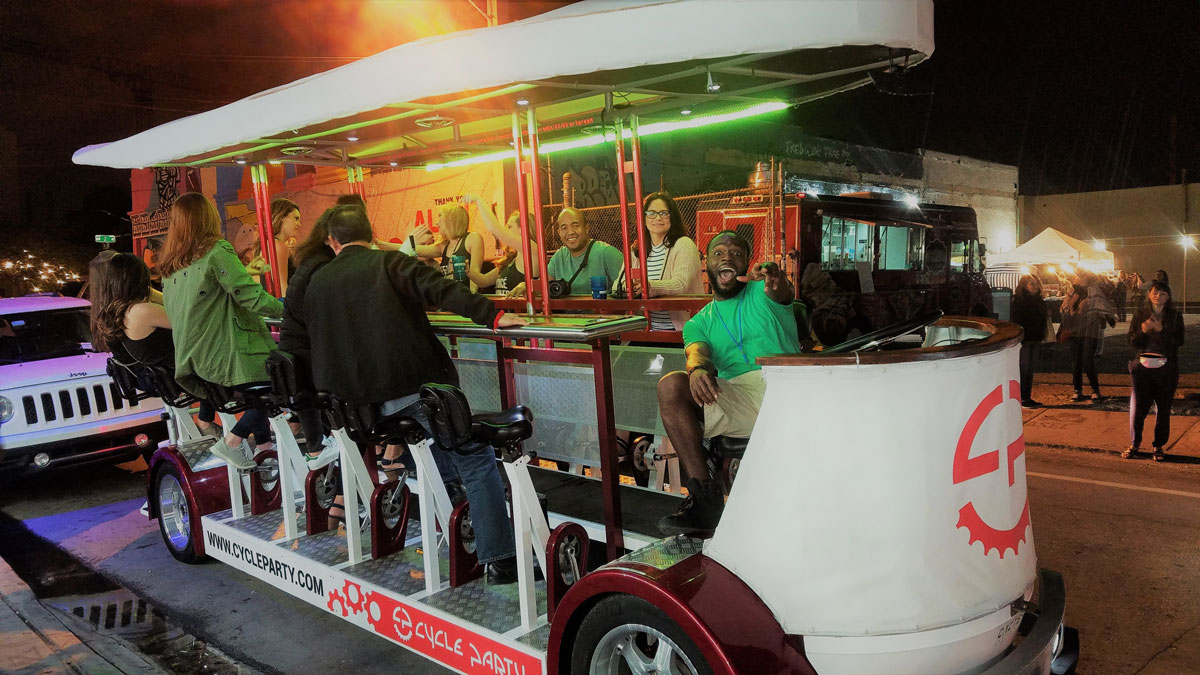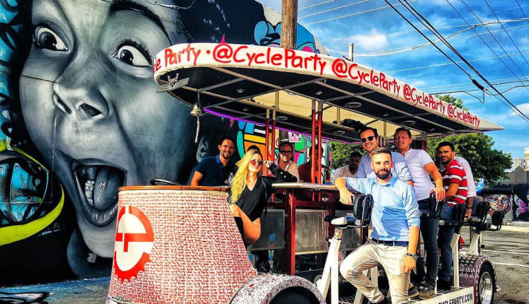 Put on your best pair of short shorts and get ready to party around Wynwood on a Private Cycle Party. Miami’s best mode of transportation takes you on a two-hour bar crawl to three bars in the Wynwood neighborhood. A souvenir cup is included so you can bring your drink from the bars back onto the party bike. Each Party Bike comes with a pilot who plays music and keeps the fun going. Through the miracles of science this amazing vehicle is powered by pedaling. Don’t worry though! It’s super easy to pedal.