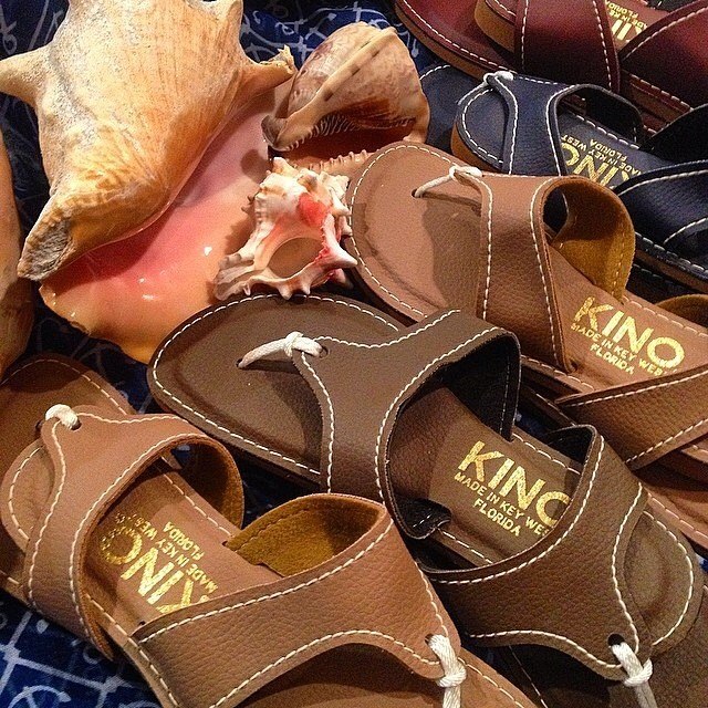 Kino Sandals offer over 17 different styles using natural leather uppers and natural rubber soles. They are all hand cut, assembled, and glued in our traditional sandal factory since 1966. It is Located in Kino Plaza at the corner of Greene and Fitzpatrick Streets in Key West Florida.