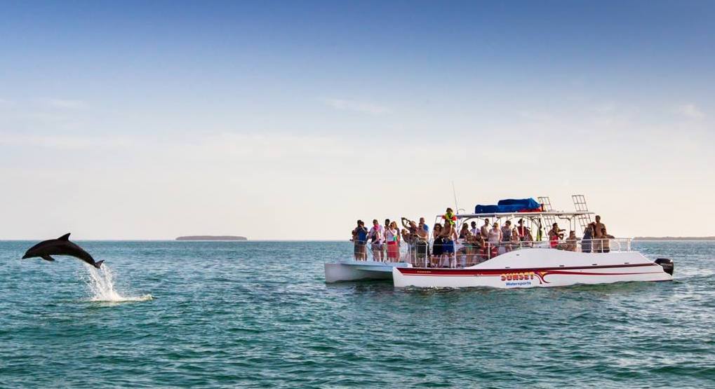 Keep your eyes peeled as it is not uncommon to see sea turtles, large and majestic eagle rays or an array of colorful coral fish. Once you are done snorkeling, enjoy unlimited cold draft beer and soft drinks as we cruise back through the historic Key West harbor. With 2 trips each day, we know exactly where the best dolphin & snorkeling spots are. Join us for this great Key West watersports combo.