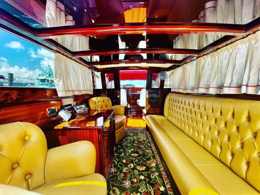 Let’s set the stage for a red carpet roll out. Once aboard you’ll be able to have the best of both worlds with the beautiful weather of Miami or head inside and sit back and enjoy the A/C. Want to sit inside but still be out in the Florida sun? Not a problem with our convertible roof.