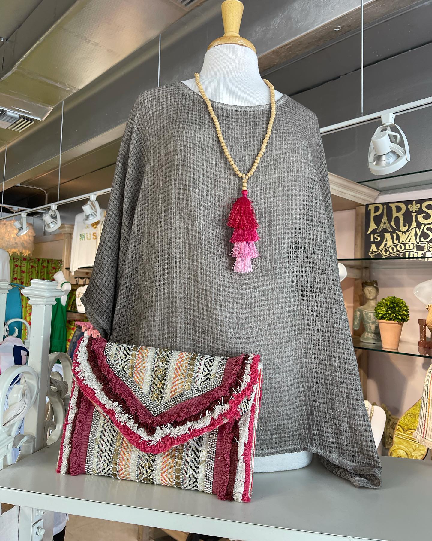 Beautiful boutique filled with gorgeous apparel, hats, handbags, accessories such as jewelry, belts, intimate apparel, scarves and gift items! Unique and eclectic with boutique brands from all over the World in all sizes