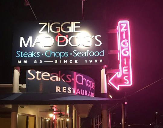 Dziś Ziggie and Mad Dog's stała się miejscem docelowym serwującym steki… jednym z najlepszych na południowej Florydzie! Kulinarne wpływy Ziggie i Mandich są widoczne nawet dzisiaj, a niektóre z ich ulubionych dań znajdują się w naszym menu.