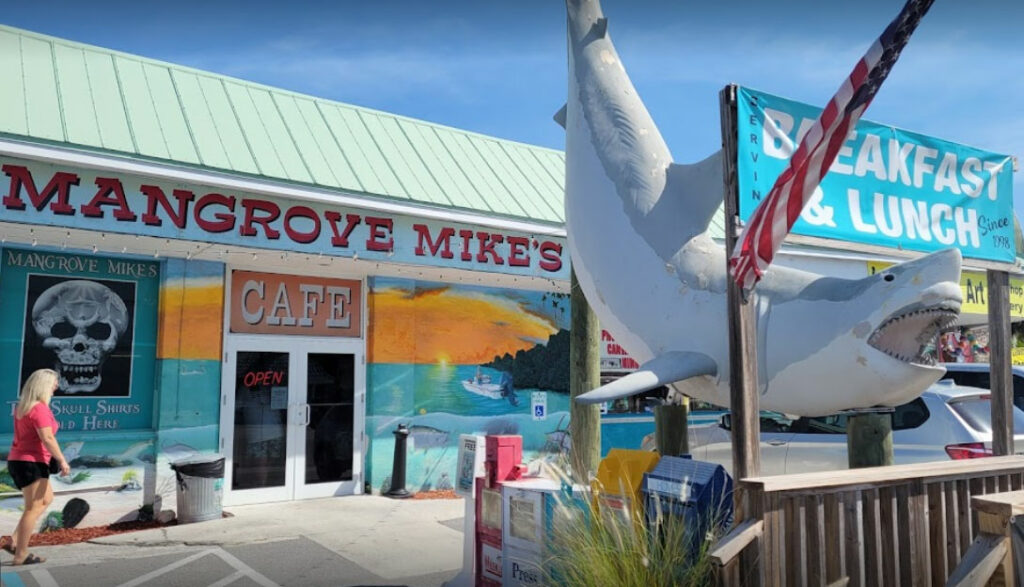 "O Mangrove Mike's Cafe é um premiado café da manhã e almoço em Islamorada. Desde sua criação em 1998, o restaurante tem sido continuamente eleito o melhor café da manhã de Islamorada no People's Choice Awards, e os elogios não param por aí. também vencedor do prêmio Wedding Wire's Couple's Choice em 2015 e 2019 e o melhor café da manhã da Southern Living em Keys em 2012. O café da manhã e almoço também oferece serviço completo de catering fora do local."