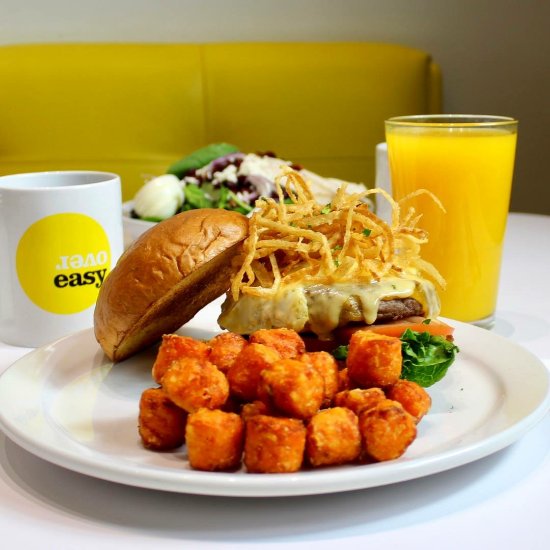 Over Easy är en av ledarna i kategorin power breakfast med unikt märkesvaror moderna diners som erbjuder en fräsch kreativ scratch-meny tillsammans med dagtid cocktails skapade för att ge gästerna en minnesvärd matupplevelse.